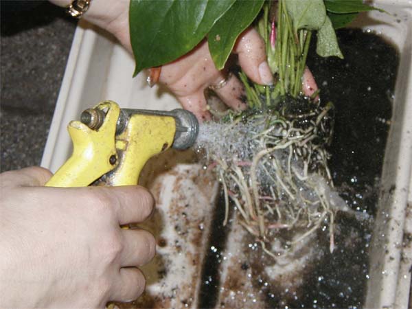 4. Wash roots thoroughly, removing all the soil. Be sure to remove all the soil. | |